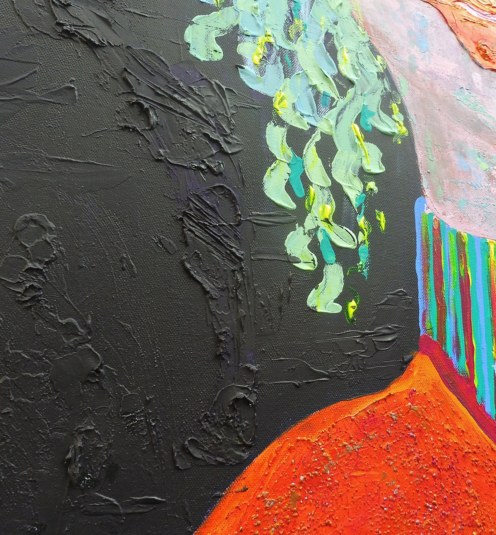 Brighten up your decor with this beautiful abstract portrait painting. This one-of-a-kind, original portrait piece is painted with acrylic colors in a colorful, figurative design. Hang it to remind yourself that “I AM FINE!”